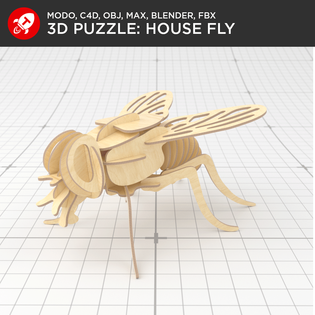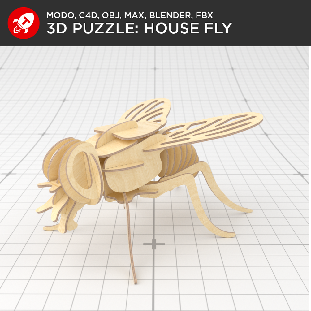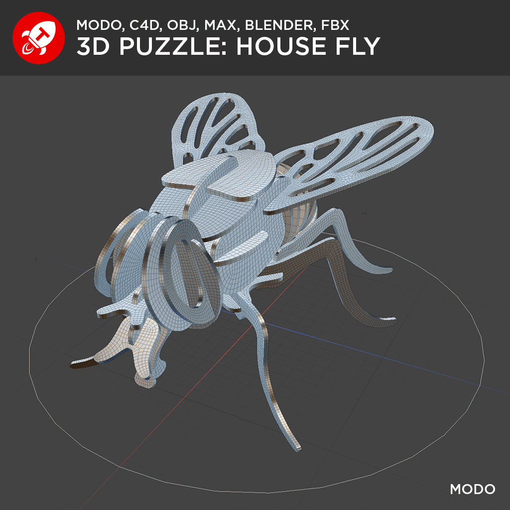 3D Puzzle House Fly. File format MODO, CINEMA 4D, OBJ, 3D MAX, FBX, BLENDER. Model is ready for subdivision using Opensubdiv with edge weight.